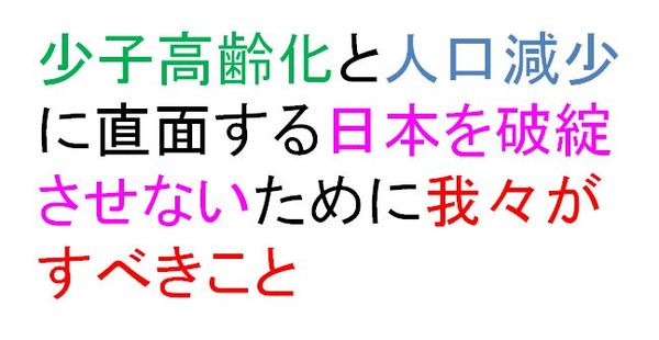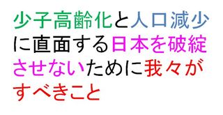 少子高齢化と人口減少に直面する日本を破綻させなめに我々がすべきこと