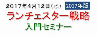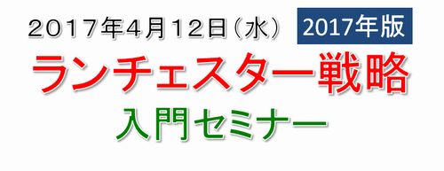 - 2017.04.12:【大阪開催】ランチェスター戦略入門セミナー 4月12日(水)